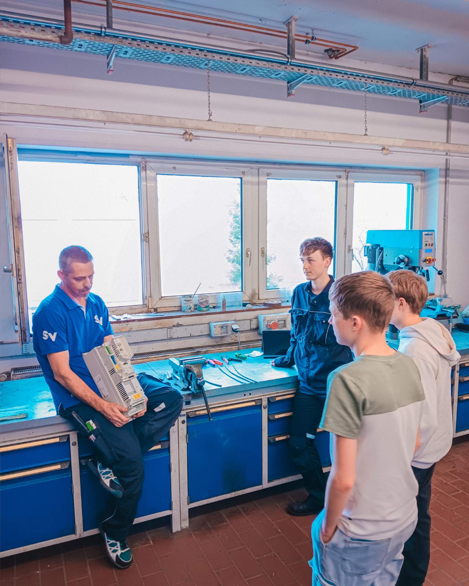 ✅ Am Mittwoch standen die technischen Berufe im Mittelpunkt. Nach einem Einblick in die technischen Anlagen, unter Begleitung von unserem Ausbilder Mirko, wurde es in der Werkstatt richtig praktisch: Die Schüler durften selbst aktiv werden, Kabel crimpen und Gewinde bohren bzw. schneiden, während Azubi Vincent wertvolle Einblicke in seine Ausbildung gab. Echte Werkstattluft schnuppern inklusive! 🛠️