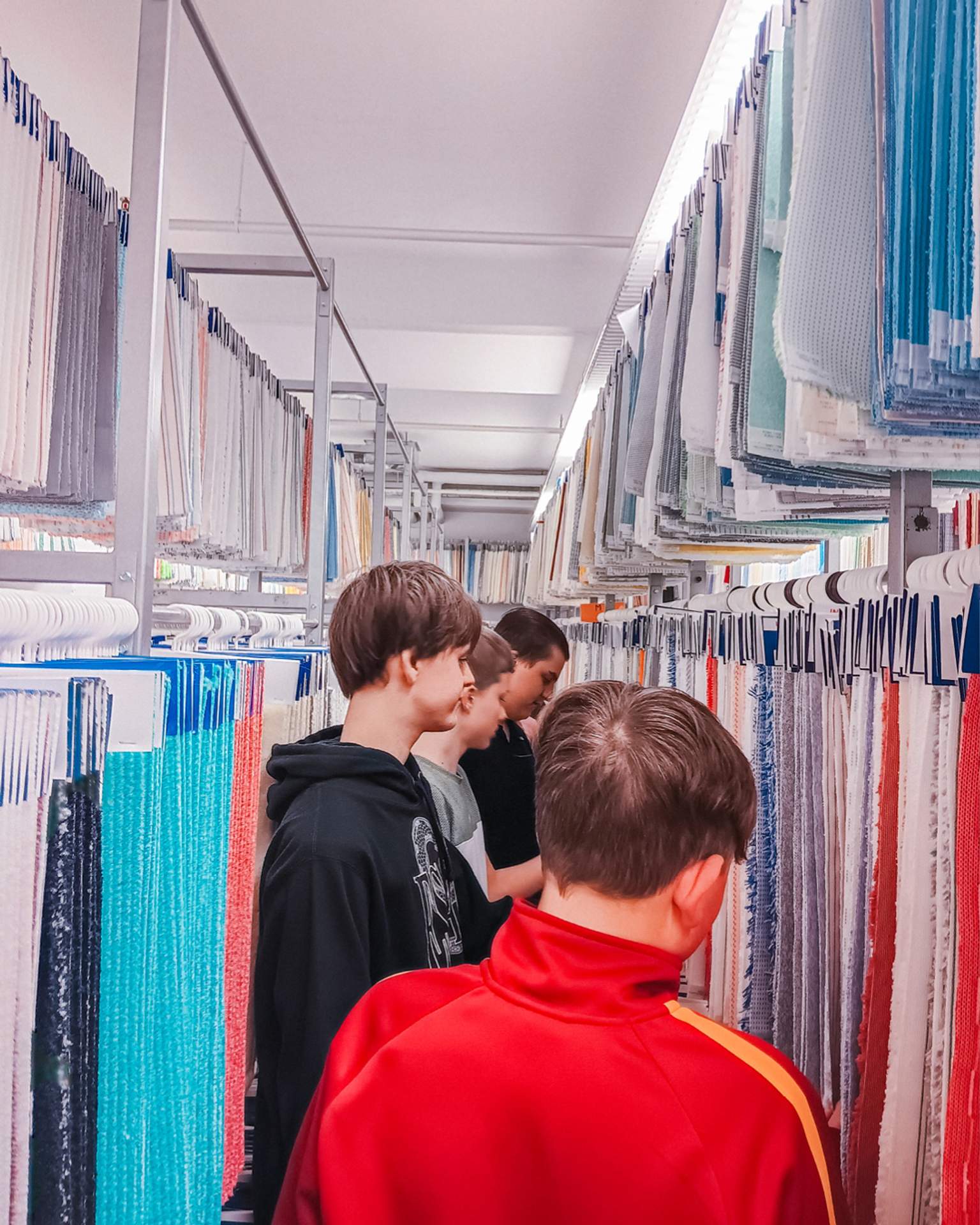 Dienstag: Maik gab tiefe Einblicke in die Textiltechnik & Lagerlogistik – inklusive Wissens-Check beim Abschluss-Quiz! Unsere Azubine Fiona zeigte den Kids, dass Verwaltung bei uns alles andere als trocken ist.